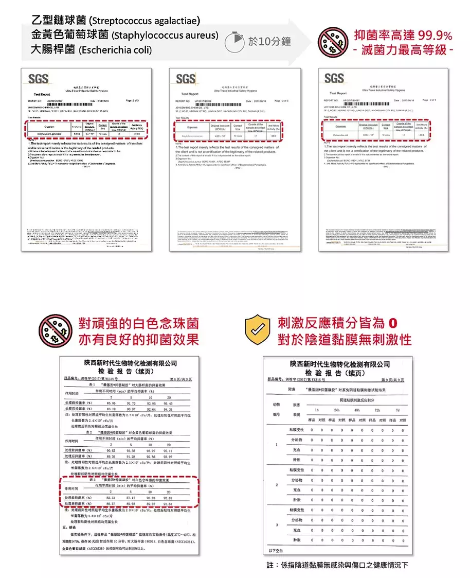 榮獲【中華民國專利 發明第I381858號】、通過國立中山大學與SGS抑菌試驗測試。